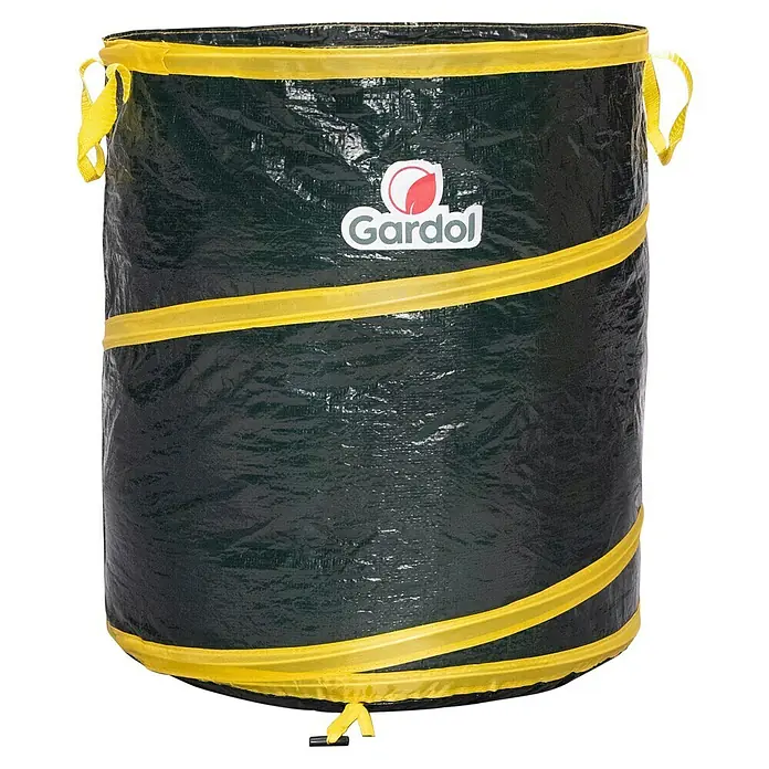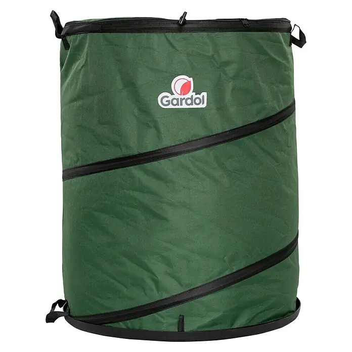 Du kannst das Laub direkt aus einem Pop-up-Sammelsack in den Drahtbehälter schütten oder es mit einer Forke aus der Schubkarre hineinbefördern.