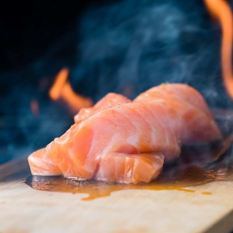 Das Grillen auf dem Holzbrett wird seit Jahrhunderten genutzt. Das Wasser verdunstet beim Grillen aus dem gewässerten Holz und das Grillgut erhält dadurch ein holziges Aroma. Nicht jedes Holz eignet sich für diese Grill-Methode. Beliebte Holzarten sind Rotzeder, Kirsche, Buche oder Erle.