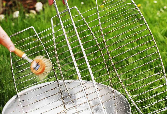 Trick 17: Den abgekühlten Rost in Zeitungspapier einwickeln, ordentlich Wasser darüber schütten und über Nacht zum Beispiel auf dem Rasen liegen lassen. Am nächsten Tag reinigst Du den Grillrost inklusive Zwischenräumen mit einem feuchten Schwamm unter fließendem Wasser. Damit beim nächsten Mal weniger kleben bleibt, verwende vorher Anti-Haft-Spray oder reibe den Rost vor dem Grillen mit etwas Speiseöl ein.