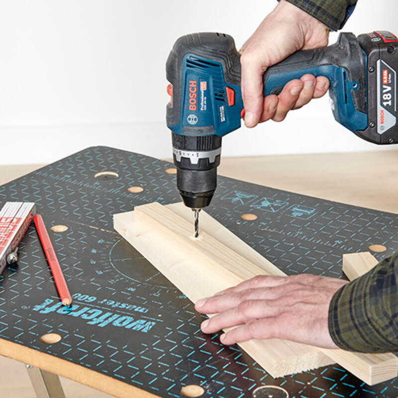 Tipp: Die Senkkopfschrauben aus Edelstahl sind zwar etwas teurer als herkömmliche Schrauben, dafür aber wetterbeständig bzw. rostfrei und – was für unser DIY-Projekt sehr von Interesse ist – verringern wirkungsvoll das Spleißen des Holzmaterials.