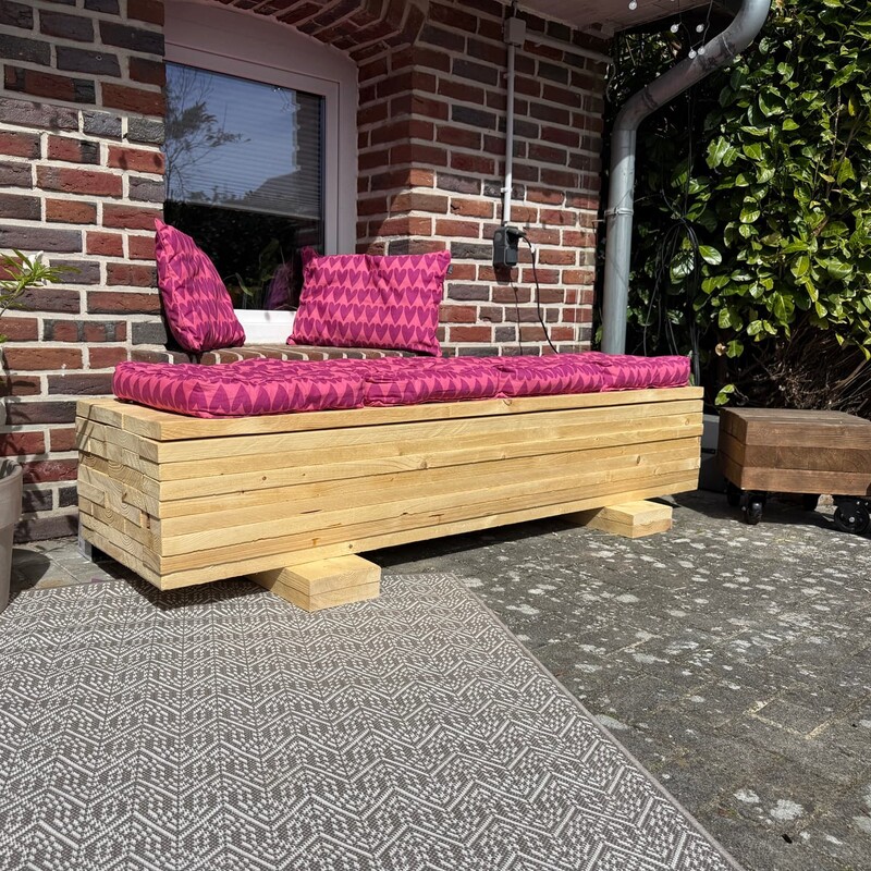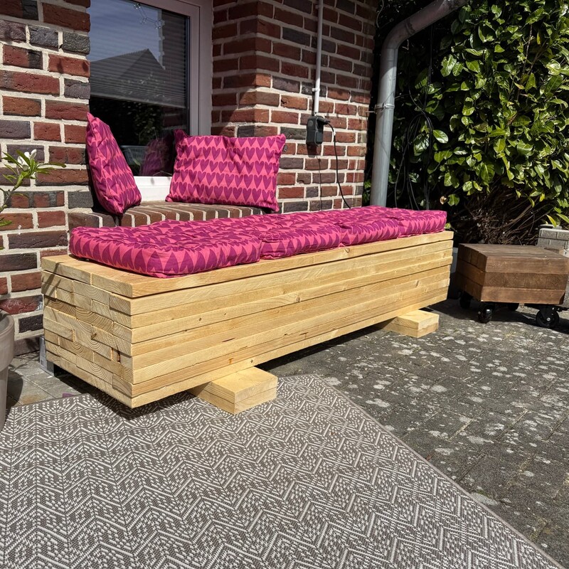 Unser Tipp: Mit Sitzkissen kannst Du Deine neue Holzbank noch gemütlicher machen.