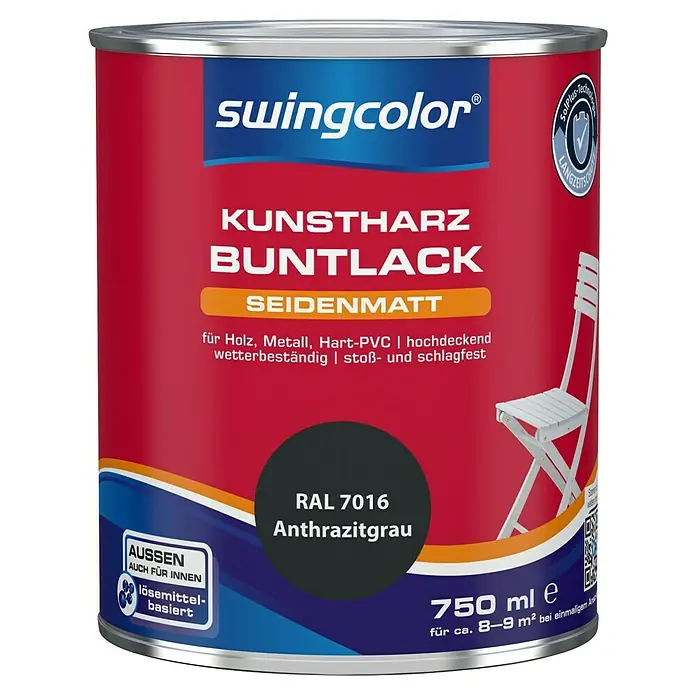 - 1 x swingcolor Buntlack Kunstharz für Außen Anthrazitgrau, seidenmatt, 750 ml, Lösemittelbasiert