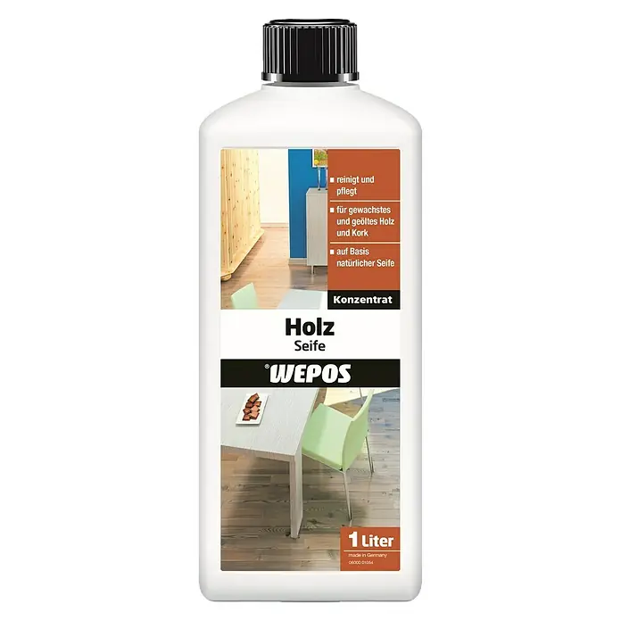 Auch wer einen verwitterten Holzstuhl hat, muss die Flächen gründlich reinigen. Dazu am besten einen härteren Schwamm nehmen und nur Wasser nutzen. Notfalls kann Holzseife zugefügt werden. Danach richtig durchtrocknen lassen, idealerweise über Nacht.