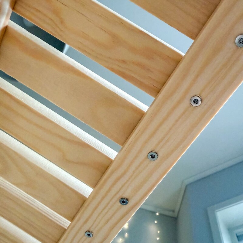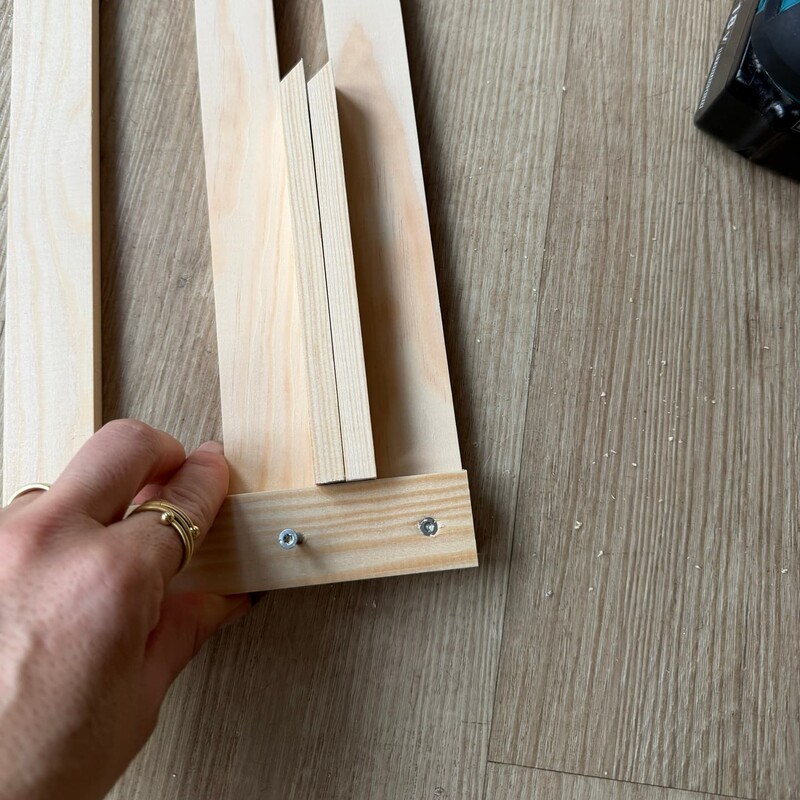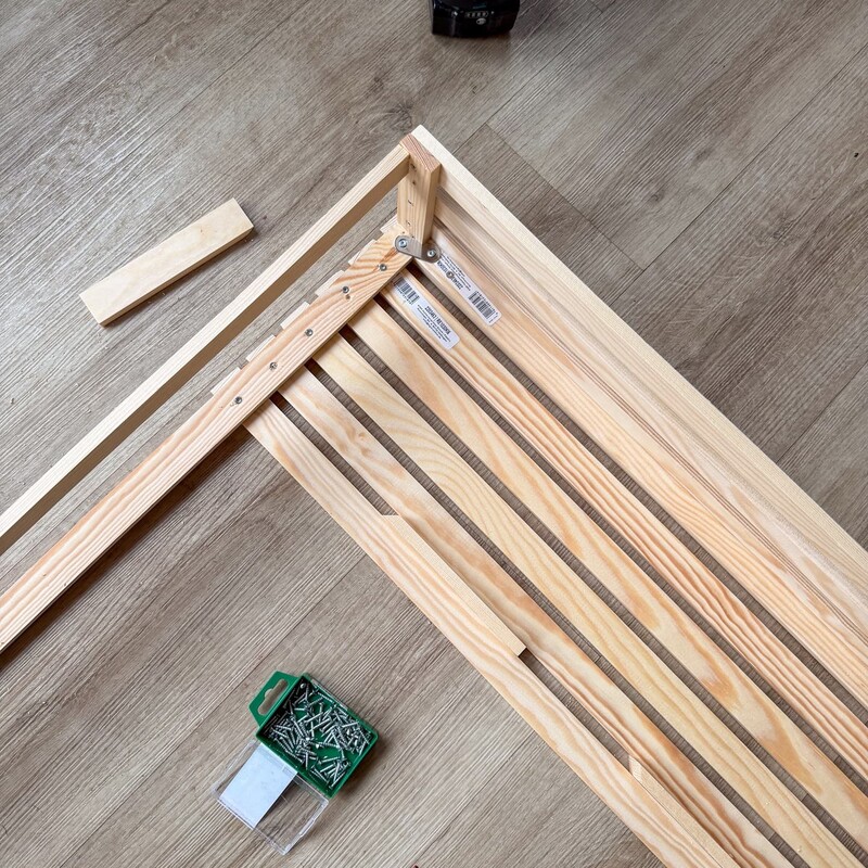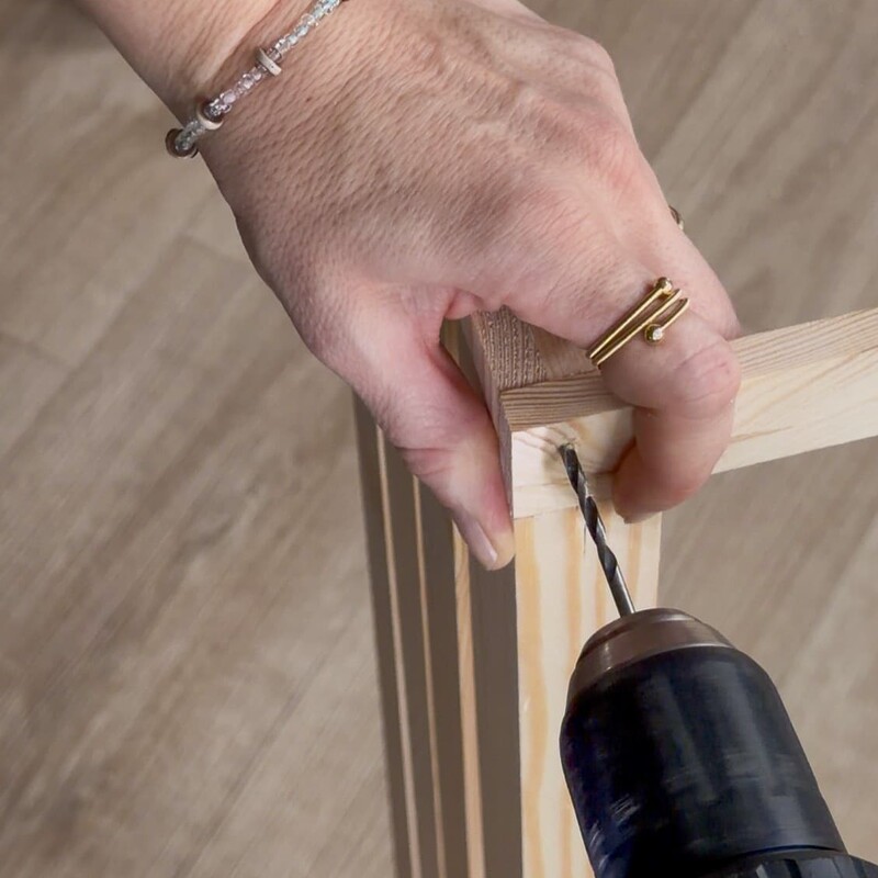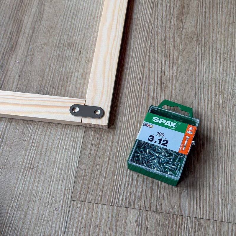 Hinweis: Beim Arbeiten mit Holz solltest Du die Schrauben immer vorbohren, damit das Material nicht reißt, die Schrauben gerade einziehen und die Verbindung sauber und stabil bleibt. Für weitere Stabilität kannst Du übrigens noch einen mittleren Querbalken einziehen.