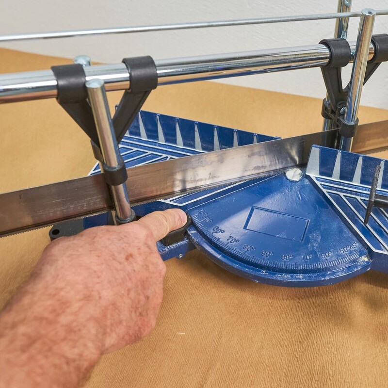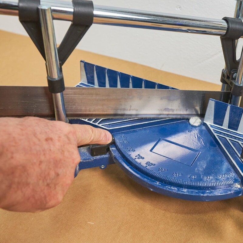 Zuerst sammelst Du alle benötigten Materialien zusammen und zeichnest dann die Schneidwinkel an allen acht Brettern vor.