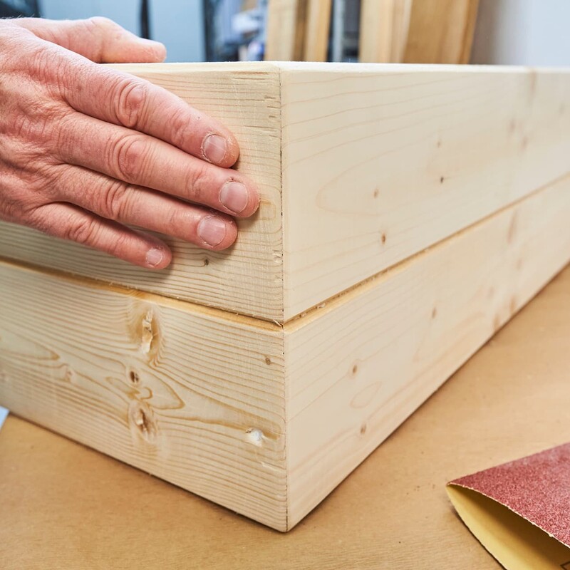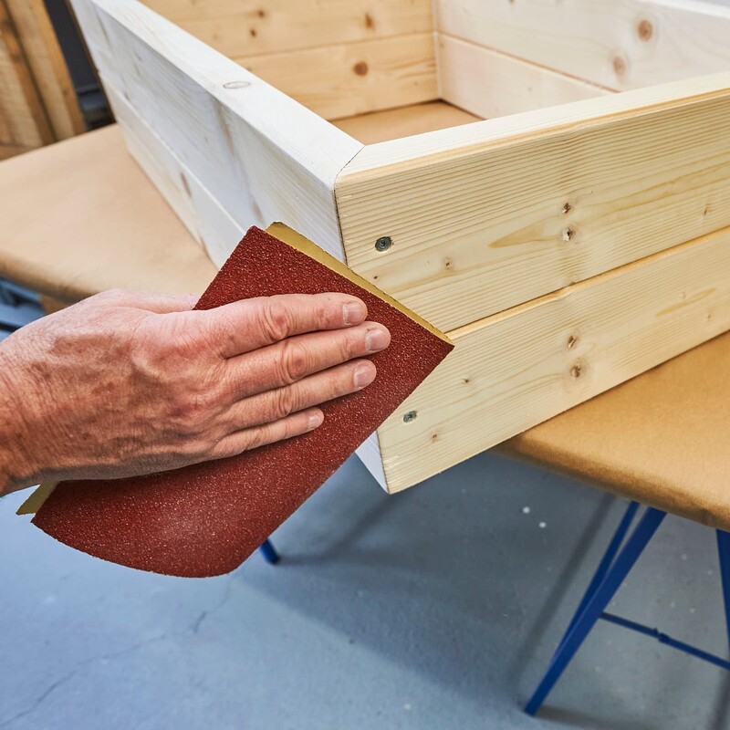 Nun kannst Du mit Schleifpapier oder mit einer Schleifmaschine alle Kanten kurz anschleifen.