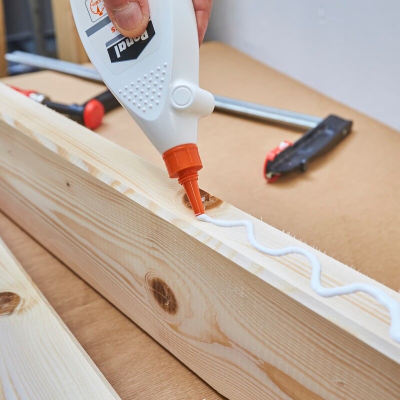 Tipp: Nutze Schraubzwingen um die Hölzer des Rahmens besser verleimen zu können.