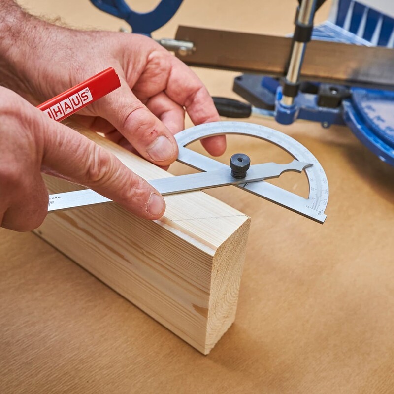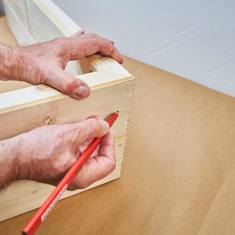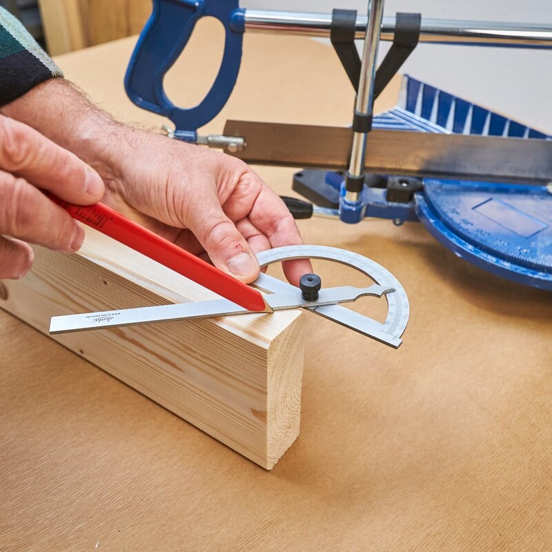 Tipp: Ein Winkelmesser hilft Dir beim Anzeichnen der Holzbretter.