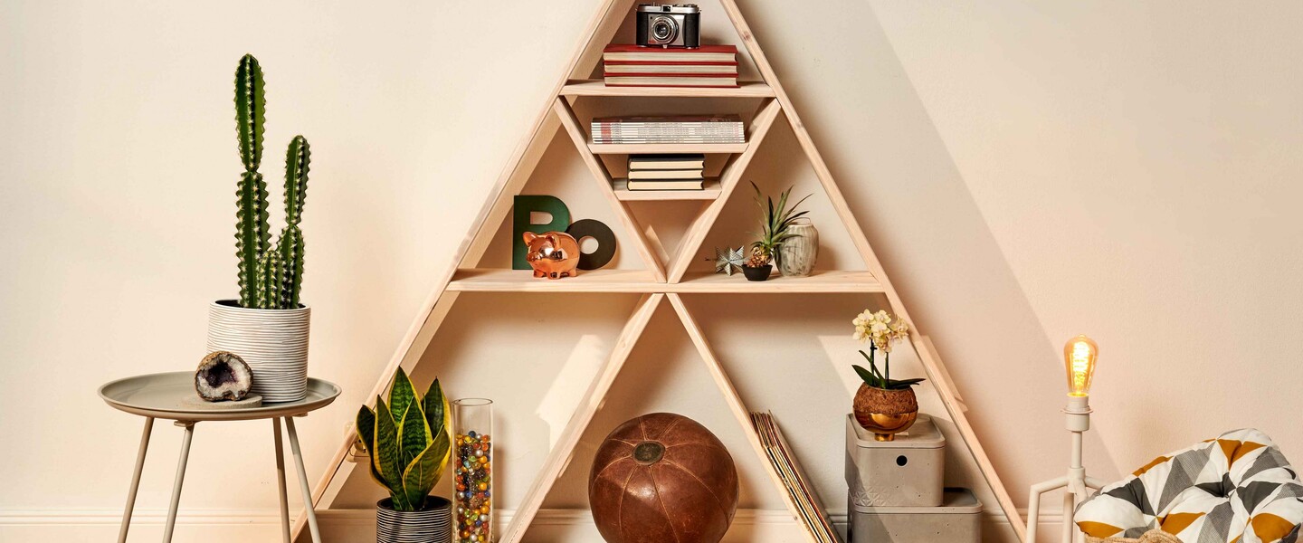 Schlicht – und maximal flexibel: Dieses DIY-Stufenregal in Pyramidenform ist ein Multitalent, das nicht nur in jedes Jugendzimmer passt. Erfahre hier, wie Du es leicht und günstig selber bauen kannst.