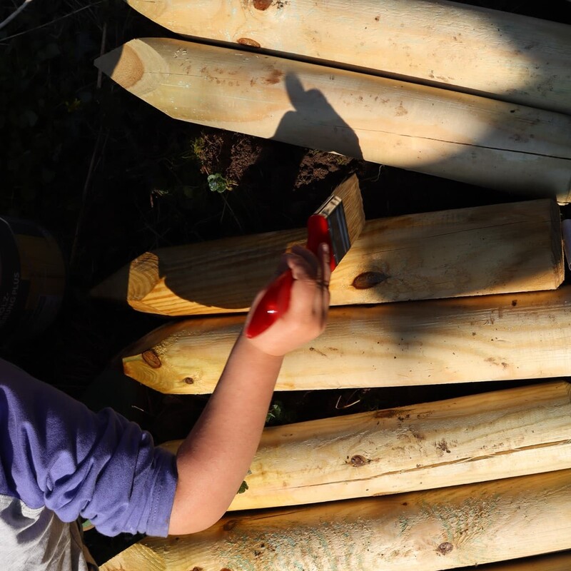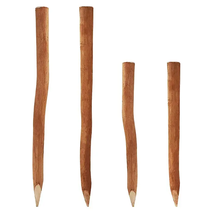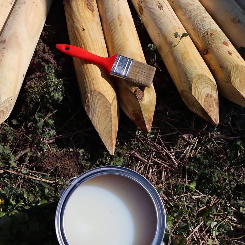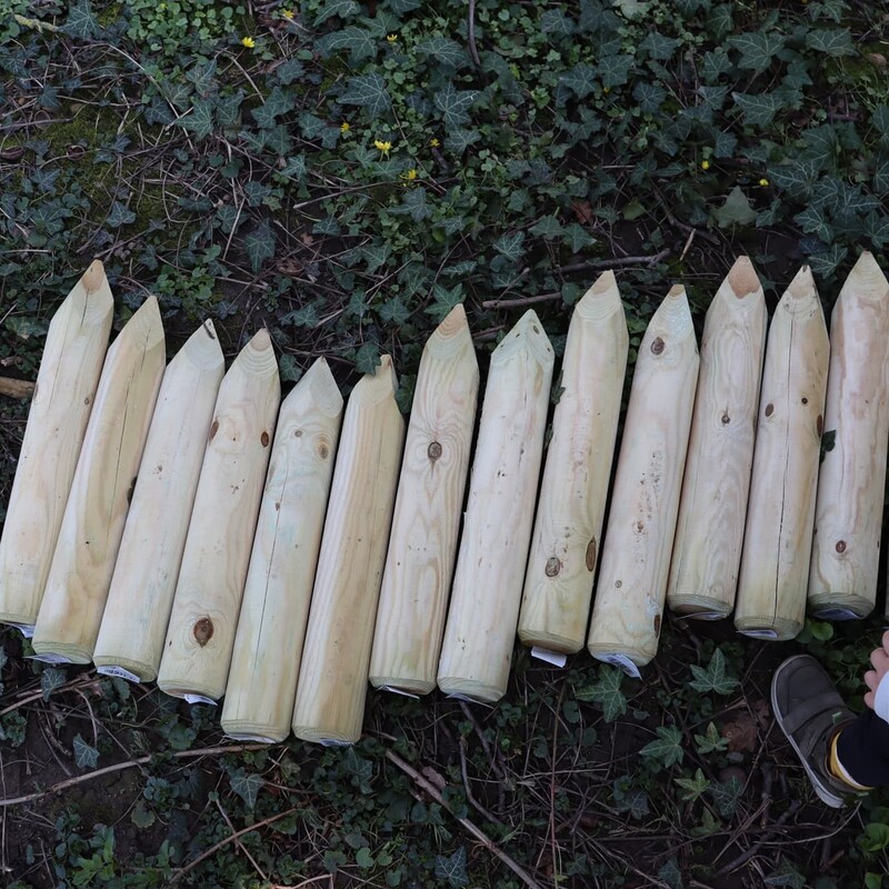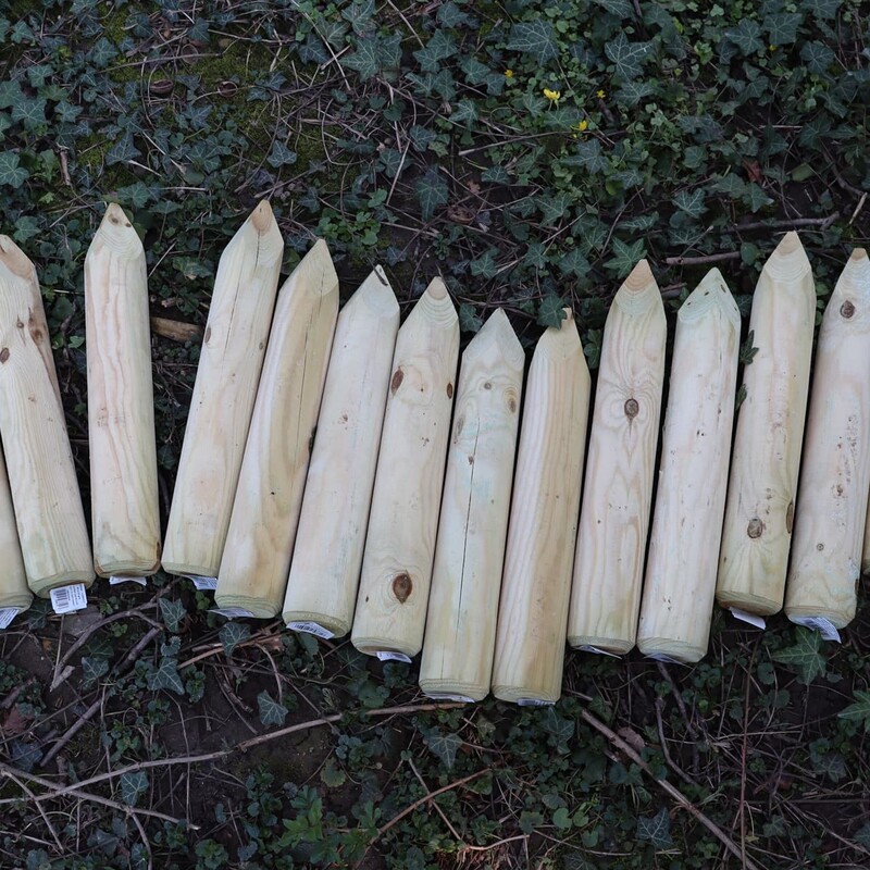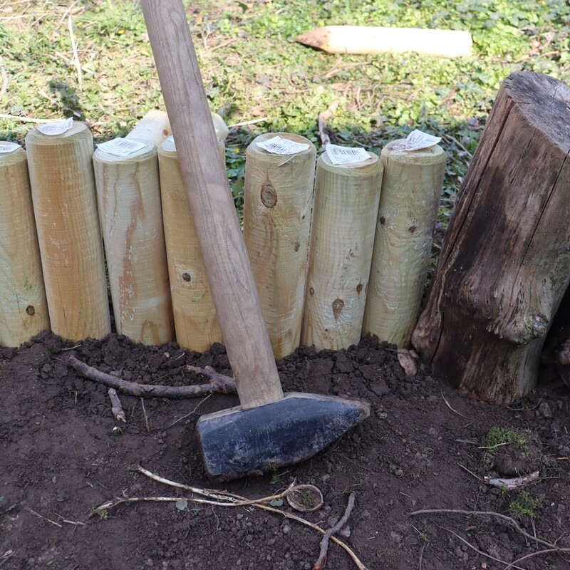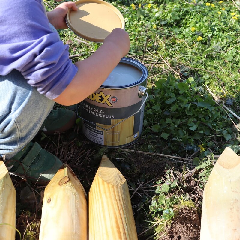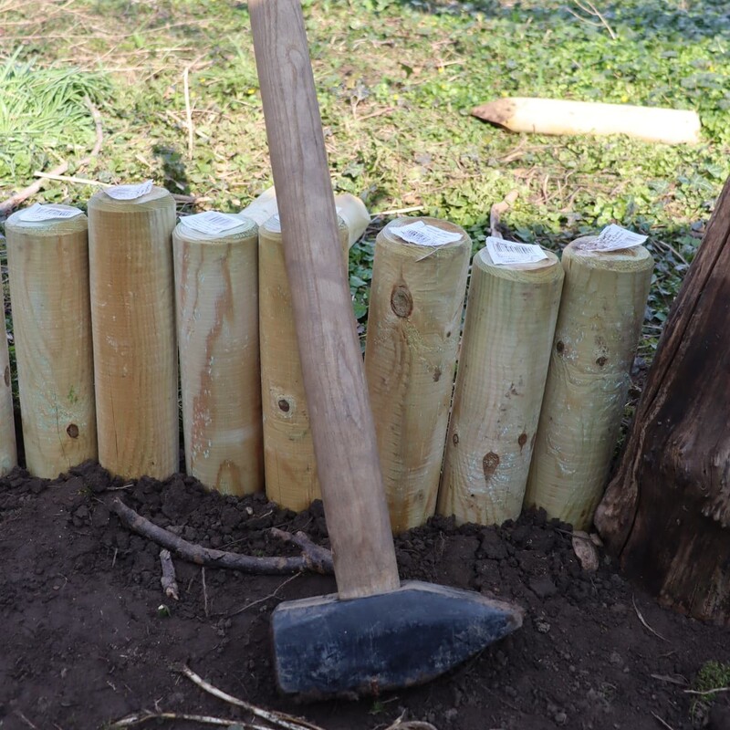 Die Einschlagpfähle behandelst Du vorher mit einer Holzschutzlasur, damit sie in der Erde länger halten.