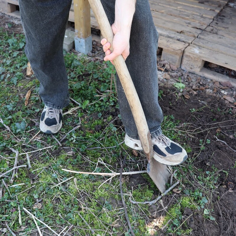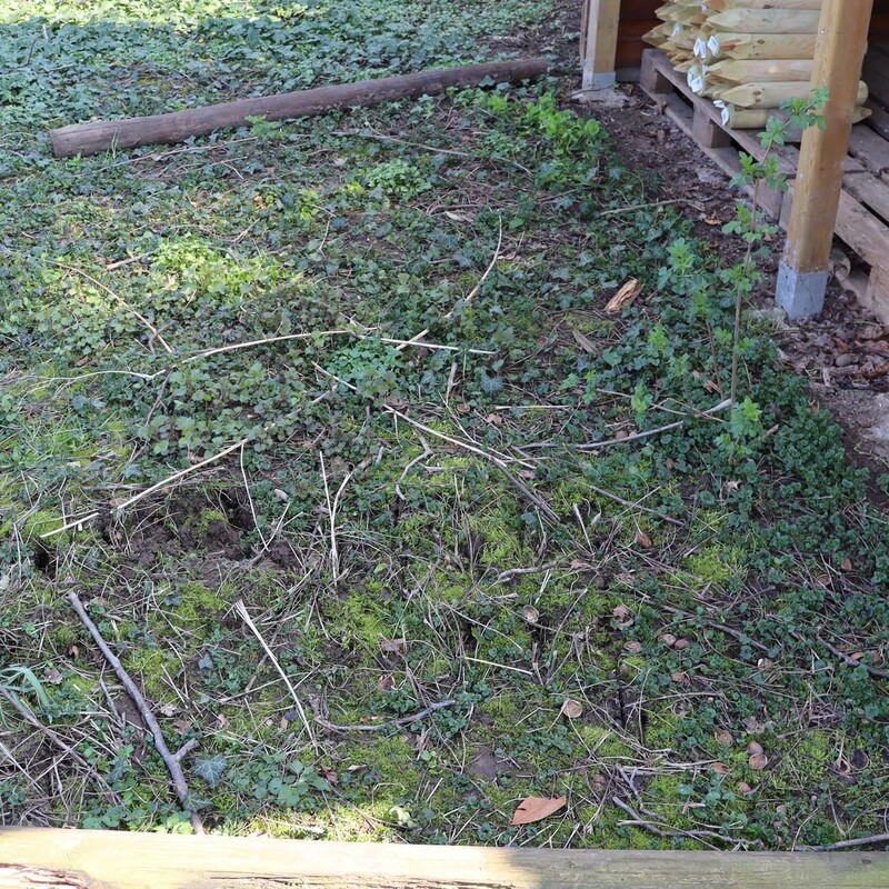 Als nächstes solltest Du die Fläche in Deinem Garten grob auslegen, um zu schauen, wie der Sandkasten später aussehen wird.