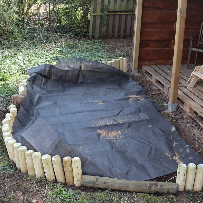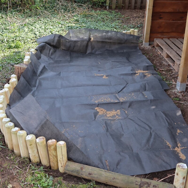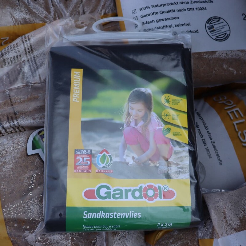 Wichtiger Tipp: Nutze ein Unkrautvlies, damit später nichts von unten in Deinen Sandkasten durchwächst.