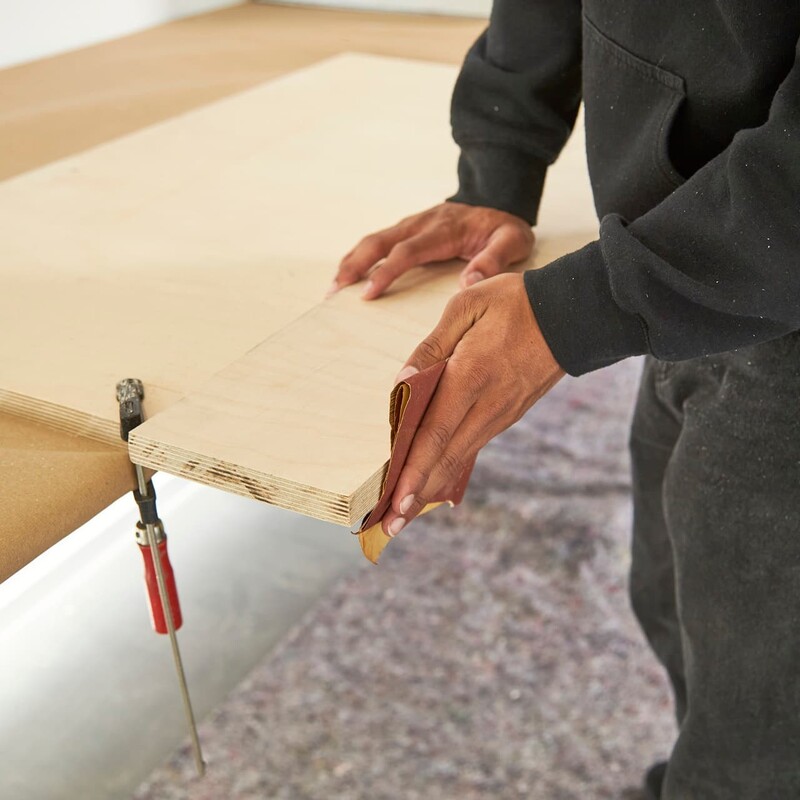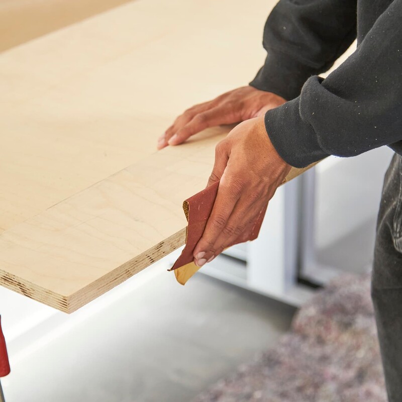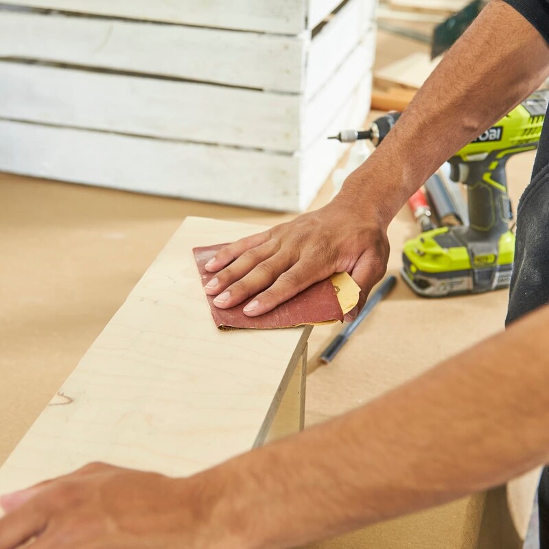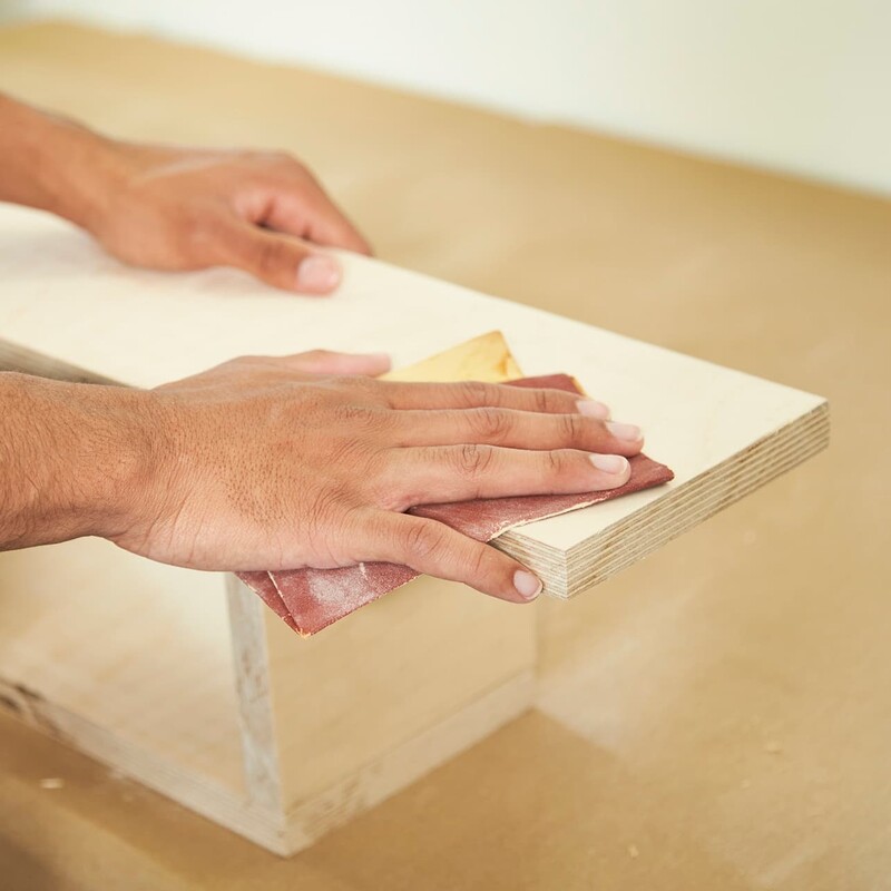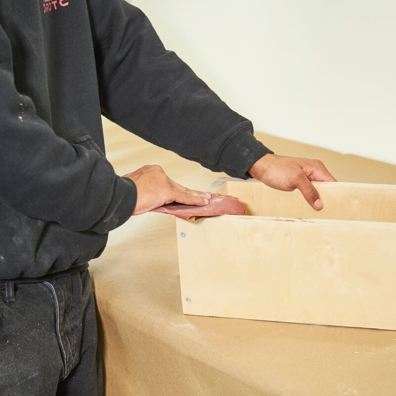 Jetzt glättest Du mit einer Schleifmaschine oder mit Schleifpapier vor dem Anstrich alle Kanten.