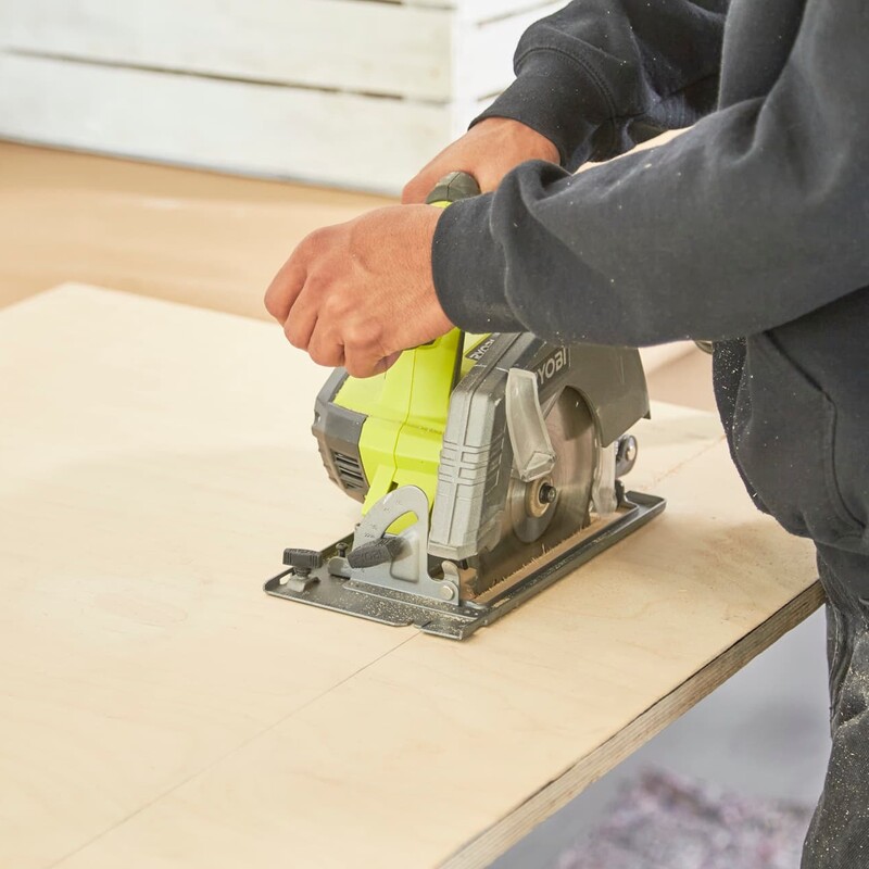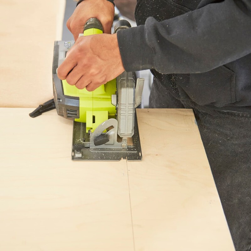 Schneide nun mit einer Handkreissäge oder Stichsäge das Holz für Deckel, Boden und Seitenteile zu. Achte darauf, dass die Maße stimmen, damit die Teile später einen rechteckigen Rahmen ergeben.
