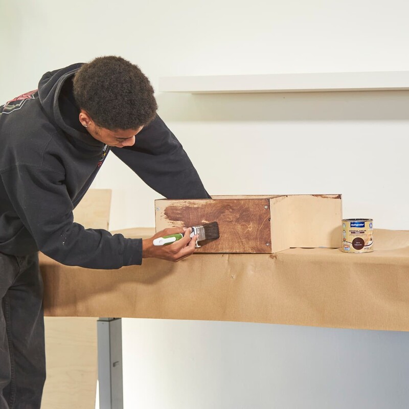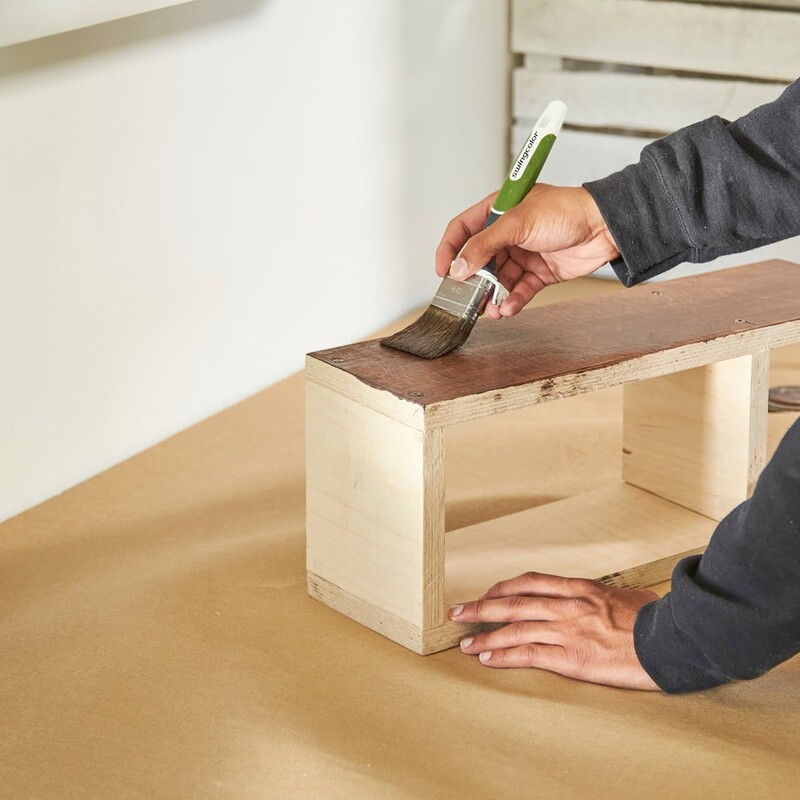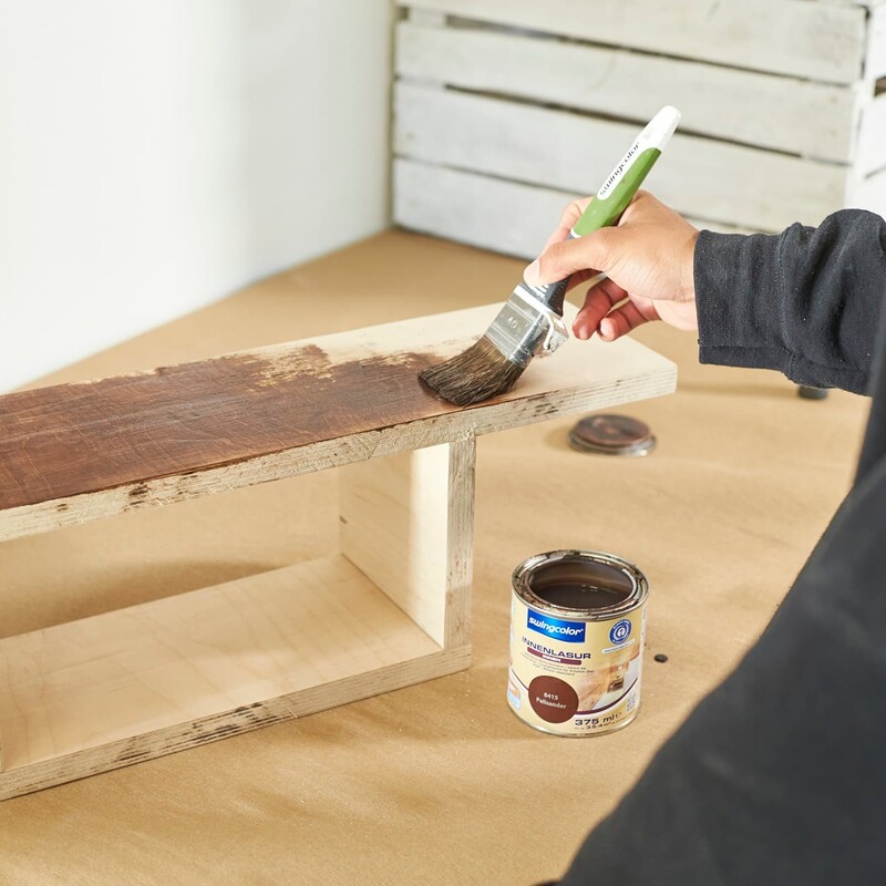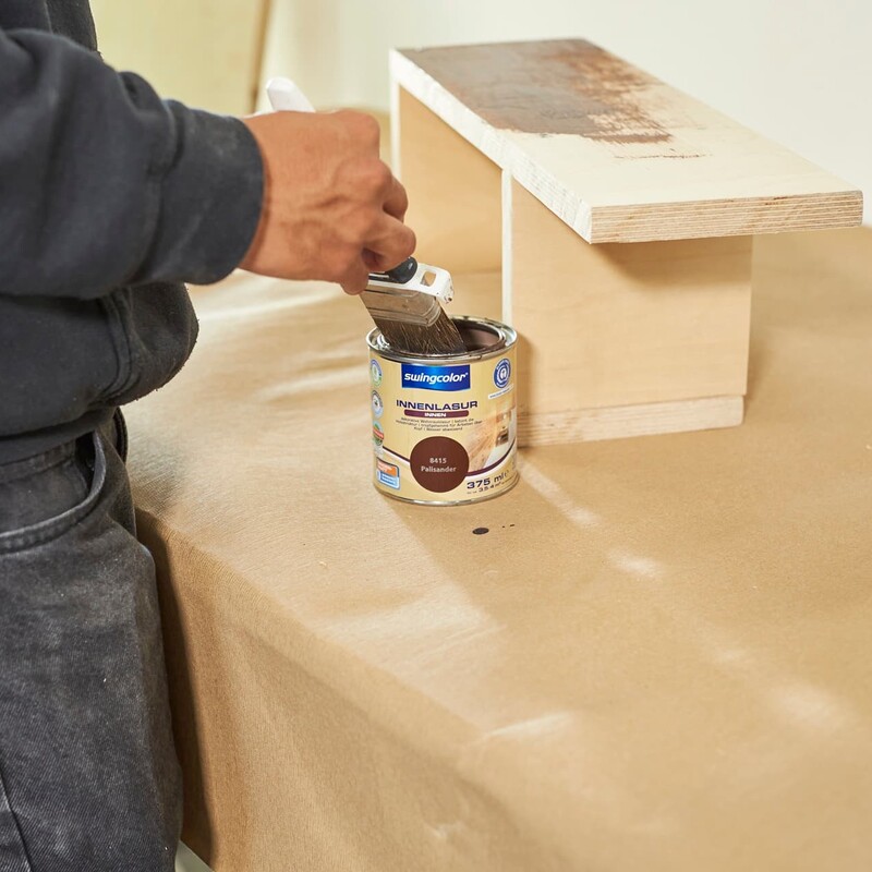 Zuerst behandelst Du das Holz mit der swingcolor Innenlasur, um ein tolles Finish zu erzielen und das Holz vor Feuchtigkeit zu schützen.