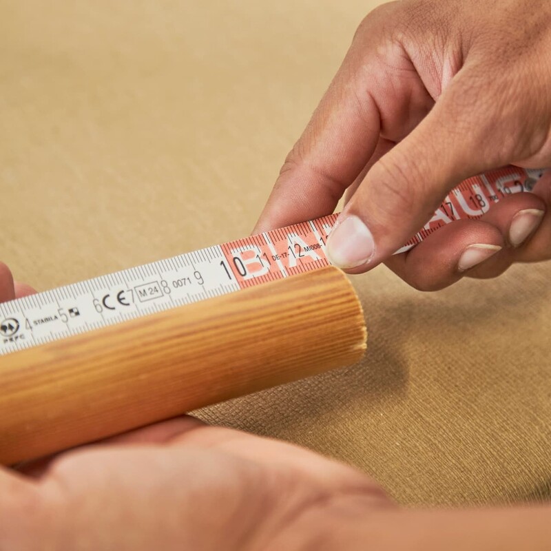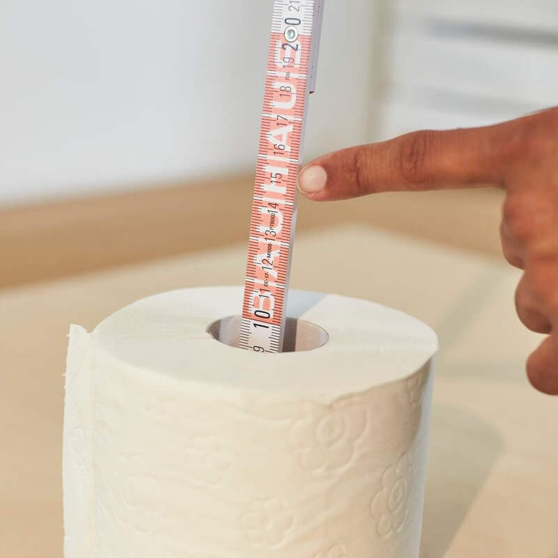 Im ersten Schritt misst Du mit einem Zollstock die Breite einer Toilettenpapierrolle aus.