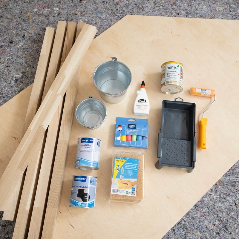- 1 Holzplatte (Multiplex oder MDF), ca. 90 × 140 cm, 12 mm stark
