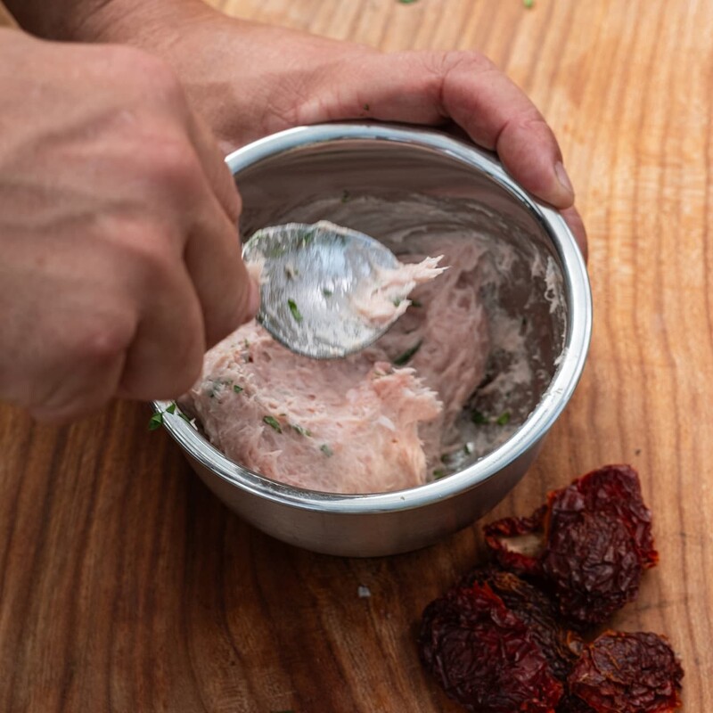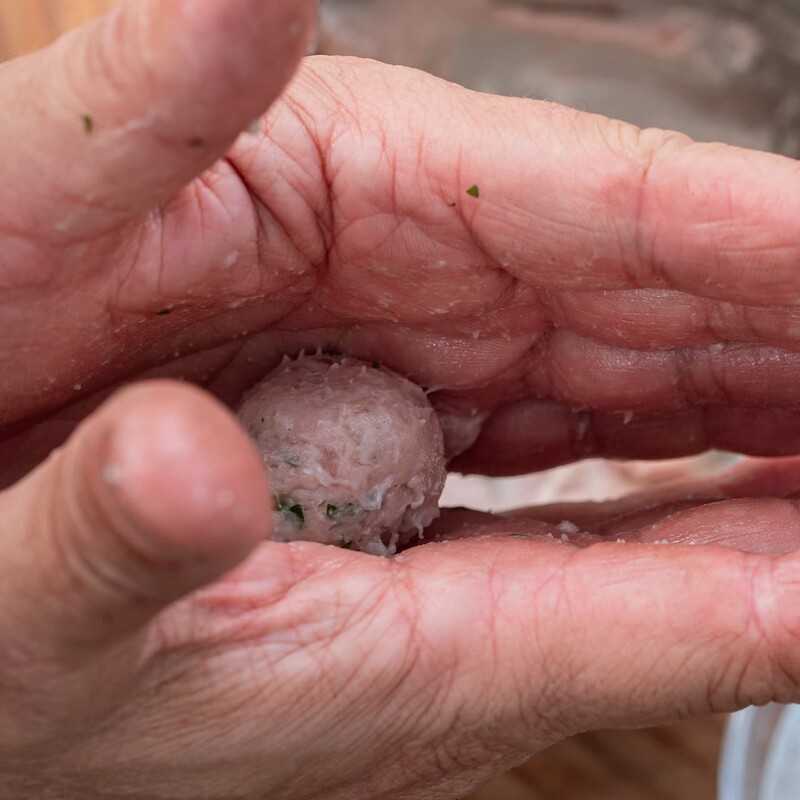 Die getrockneten Morcheln in kaltem Wasser einweichen. Die durchgelassene Hähnchenmasse (am besten nimmst Du hierfür Brust oder wahlweise auch Putenbrust) mit der gehackten Petersilie, Salz und Pfeffer abschmecken und zu kleinen Frikadellen formen.