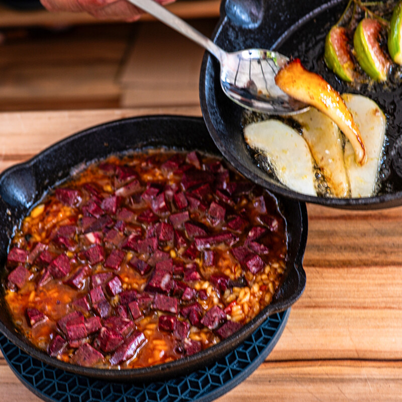 Blutwurst – Paella mit Birne und Feige vom Grill