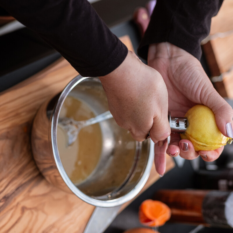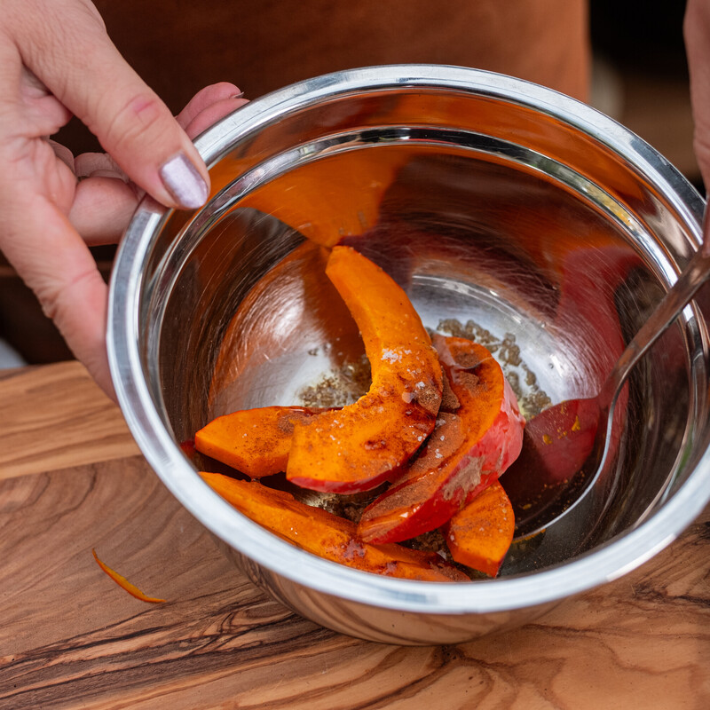 - ½ Hokkaido-Kürbis (8 schmale Spalten)