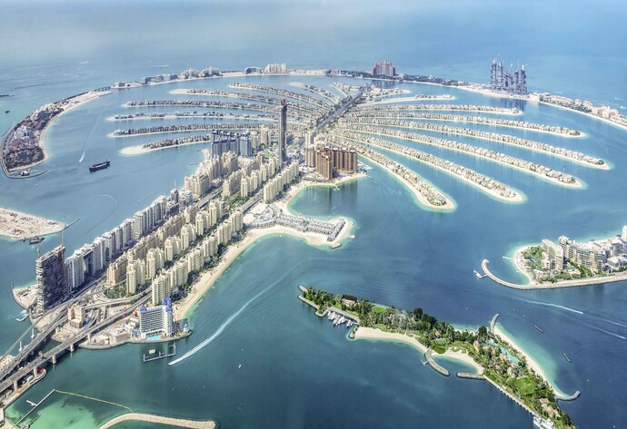 Das wohl berühmteste Beispiel für ein imagegetriebenes Offshore-Projekt ist Palm Jumeirah in Dubai. Angeblich wurden im Jahr 2001 sage und schreibe 94 Millionen Kubikmeter Sand und 7 Millionen Tonnen Stein für den Bau der künstlichen Halbinsel in Form einer Palme verwendet.