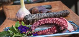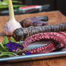 Wir haben für Euch ein Grillrezept für einen Burger ohne Fleisch. Aber ein Burger mit Pulpo in der Kombination mit der Frische von Obst.
