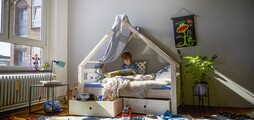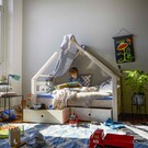 Schlafen, spielen, Stauraum nutzen: Dieses Tipi-Bett aus Holz macht’s möglich. Unsere SfS-Anleitung zeigt, wie Du das DIY-Kinderbett selber bauen kannst.