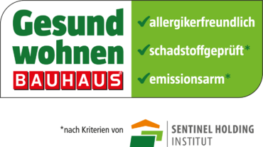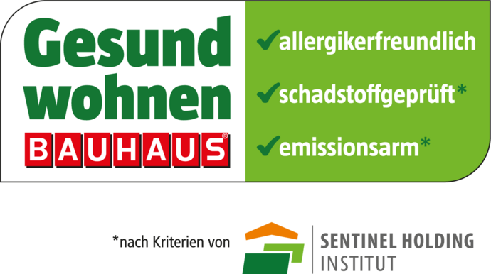 BAUHAUS bietet dafür Orientierung: Achte auf das GESUND WOHNEN-Signet und die grünen Preisetiketten in den Fachcentren. Das Versprechen: schadstoffarme, emissionsarme und allergikerfreundliche Produkte. Nur wenn durch Tests unabhängiger Labore alle Prüfkriterien und die strengen Grenzwerte eingehalten werden, wird ein Produkt in das GESUND WOHNEN-Sortiment aufgenommen – damit Du sorglos durchatmen kannst.