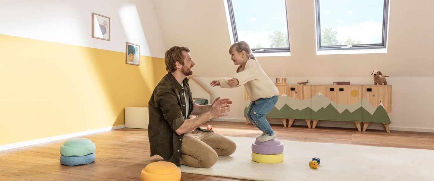 Das GESUND WOHNEN-Signet von BAUHAUS kennzeichnet über alle Warenbereiche hinweg besonders schadstoffarme, emissionsarme und allergiefreundliche Produkte, die strenge Prüfkriterien einhalten. Bei der Auswahl unterstützen Dich unsere zertifizierten Fachcentren mit ihrem geschulten Personal gerne. Damit das Kinderzimmer zu einem gesunden und sicheren Ort – und das Spielen zur ungetrübten Freude wird. Mehr zur Gesund Wohnen-Initiative erfährst Du hier.