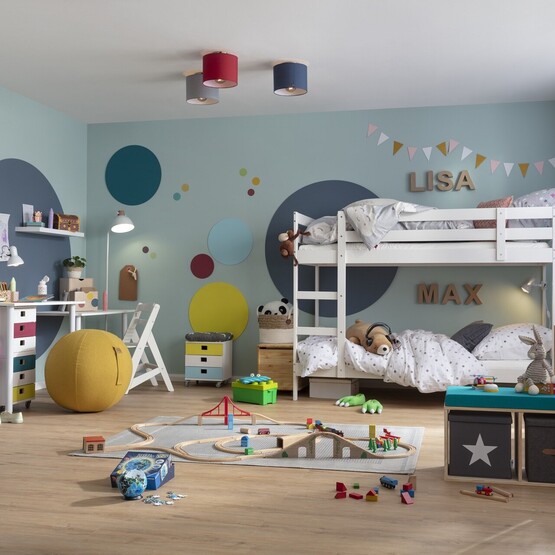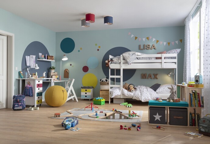 Um Kinder – und zuvor natürlich auch die werdende Mutter – bestmöglich vor Ausdünstungen zu schützen, sollten der Ausbau oder die Renovierung des Kinderzimmers möglichst frühzeitig fertiggestellt und gut gelüftet sein, bevor es bezogen wird. Grundlegend kann bereits bei der Auswahl der verarbeiteten Werkstoffe auf minimale Schadstoffmengen und Emissionen geachtet werden, um die Belastung von Anfang an bestmöglich zu minimieren. BAUHAUS führt eine große Auswahl schadstoffgeprüfter Materialien zum Innenausbau, von Baustoffen und Bodenbelägen bis Tapeten und Wandfarben, die explizit für den Anspruch an ein gesundes Wohnumfeld geeignet sind. So ist der Kreativität im Kinderzimmer kaum eine Grenze gesetzt!