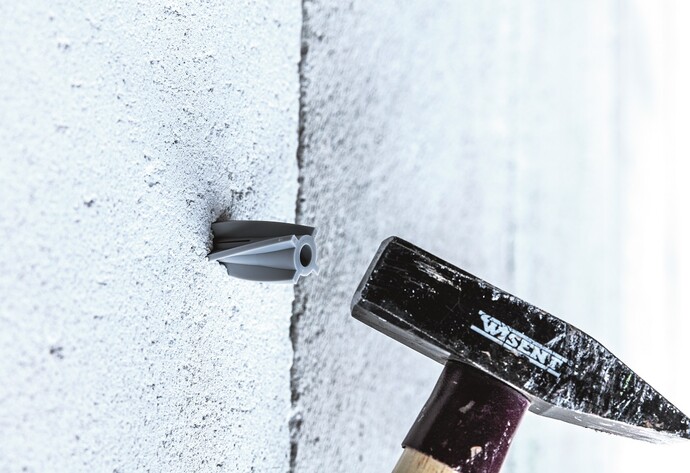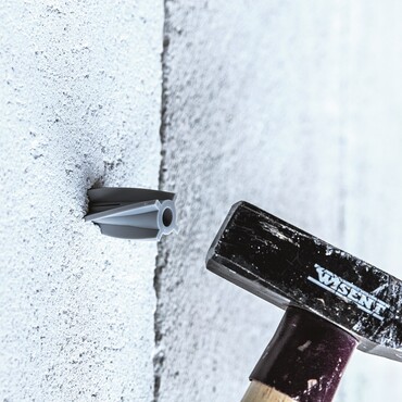 Das ist der Experte für alle Unterkonstruktionen aus Holz und Metall auf Stein. Und weil er nicht geschraubt, sondern mit dem Hammer eingeschlagen wird, ist er extrem schnell und zuverlässig in der Anwendung. Da der Nageldübel für die Durchsteckmontagen gedacht ist, wird im Regelfall nur die Latte oder Leiste auf den Stein gelegt, eine Bohrung in den Stein gesetzt und der Dübel samt Schraube mit einigen Hammerschlägen von oben eingetrieben. Fest! Zum Lösen könnte man die Schraube später mit dem Akkuschrauber wieder herausdrehen. Dieser sehr beliebte Dübel wird - immer zusammen mit der passenden Schraube - in einer Vielzahl von Längen und Durchmessern angeboten.