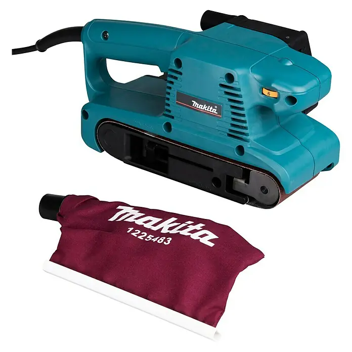 Der Kraftprotz. Der trägt in kurzer Zeit viel Material ab, auch an Kanten. Funktioniert für Holz, Metall, Kunststoffe. Die Geschwindigkeit ist regulierbar. Braucht regelmäßig innen eine Staubabsaugung. Die Schleifbänder sind ein Kostenfaktor. Dazu kommt immer ein Feinschleifer für das Finish.