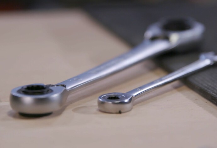 Der andere Klassiker. Auch mit abgewinkeltem Kopf. Der Außensechskant wird aber an allen Seiten umschlossen, was eine sicherere Führung ermöglicht. Braucht etwas mehr Platz als der Maulschlüssel. Größen: alle.