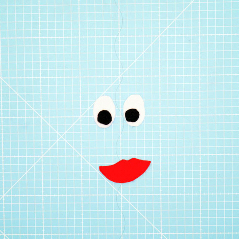 Auf dem Bastelfilz zeichnest Du Augen, Mund und Nase an und schneidest sie aus. Achte beim Anzeichnen darauf, dass die Größe stimmt, damit auch alles auf dem Handschuh Platz findet.