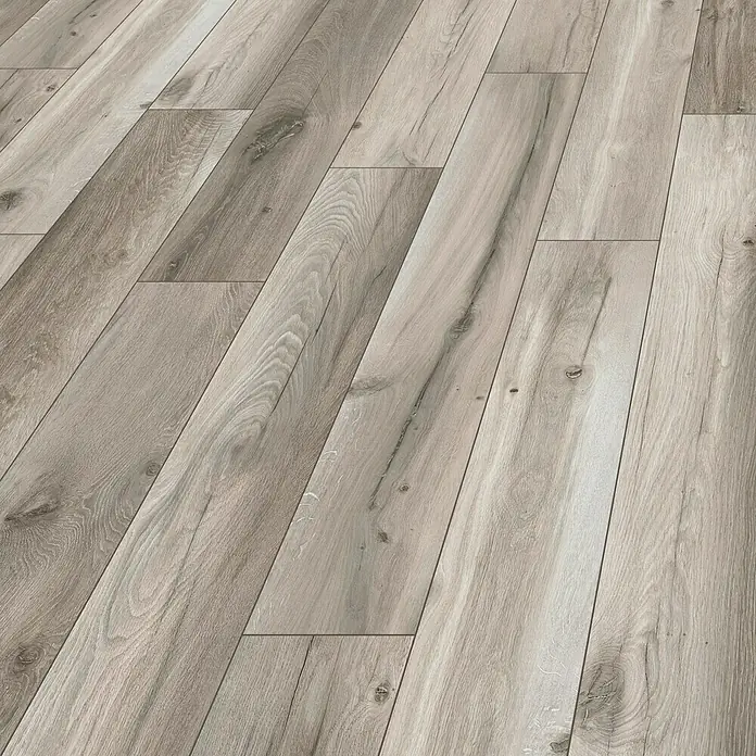 Laminat ist quasi eine begehbare Fototapete: ein mehrschichtiger Bodenbelag, dessen oberste Schicht aus einem bedruckten, mit Kunstharz aufkaschiertem Dekorpapier besteht. So ist Laminat in zahlreichen Dekoren erhältlich.