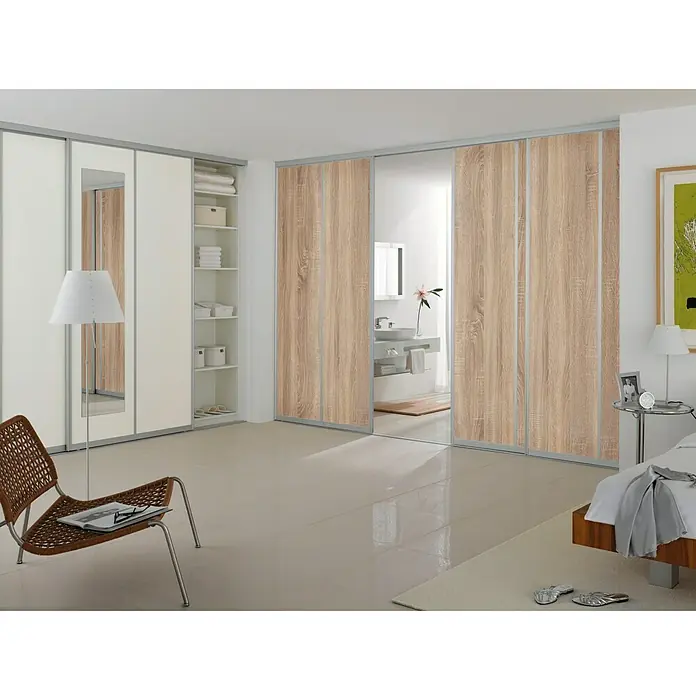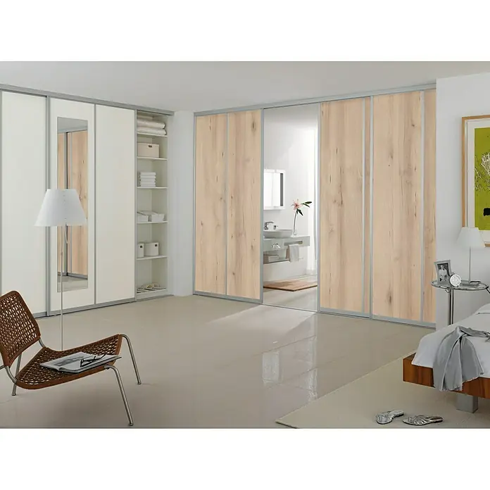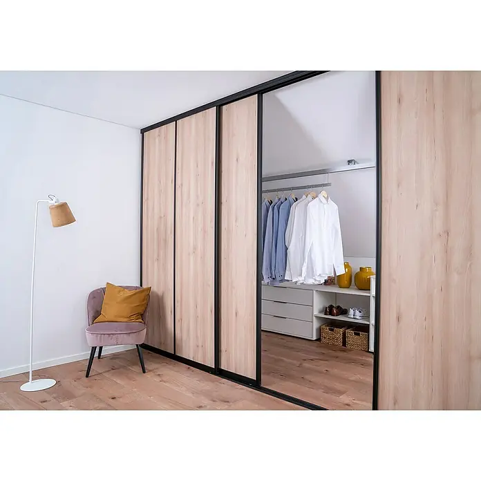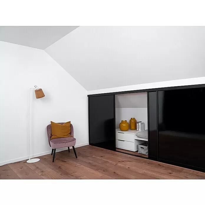 Kein Fenster im Raum? Wir empfehlen Deckenleuchten mit tageslichtähnlicher Lichtfarbe (4000 K). Das Licht wird durch den hohen Blauanteil zwar eher kühl erscheinen, lässt die Farben Deiner Sachen aber natürlich wirken. Wenn Du es morgens oder abends mal nicht so hell haben möchtest, kannst Du für eine gemütlichere Atmosphäre zusätzlich LED-Lichtleisten etwa unter den Einlegeböden montieren – bequem regelbar per Funkfernsteuerung.