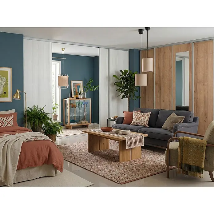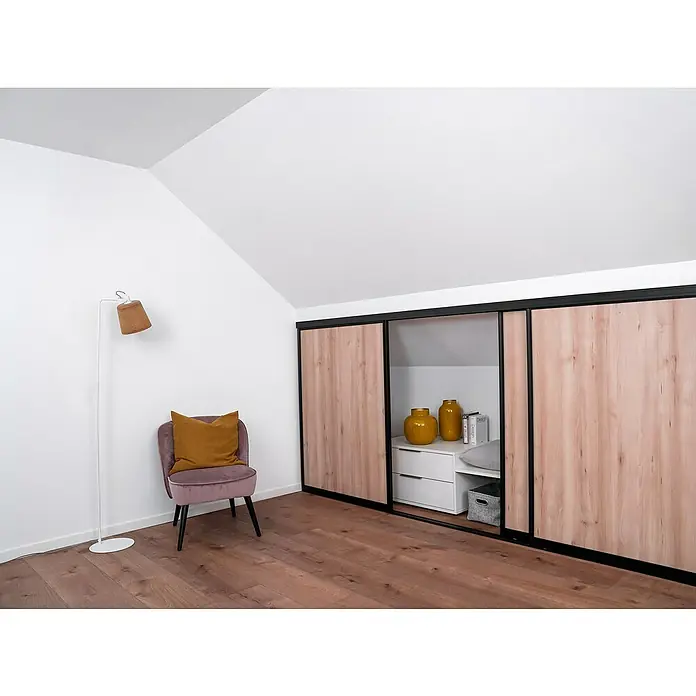 Die neu geschaffene Fläche lässt sich mehr oder weniger blickdicht abtrennen – mit Schiebetüren, Vorhängen oder Leichtbauwänden. Und sie eignet sich nicht nur als Garderobe: Auch Dinge wie Bügelbrett, Yogamatte oder Trainingshanteln, für die bislang nur neben dem Kleiderschrank Platz war, finden in der neuen Nische ein Eckchen.