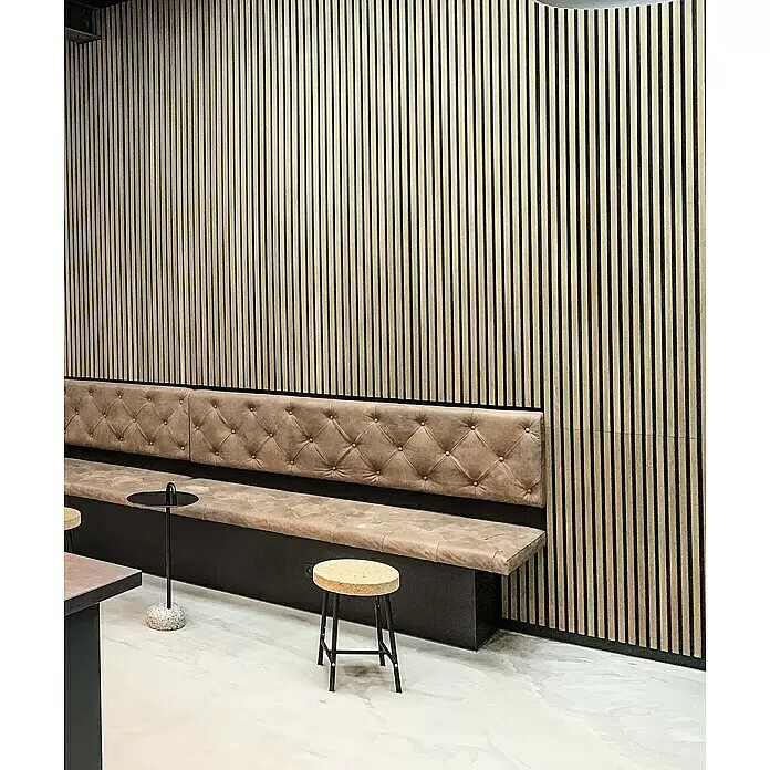 Heimkommen, Runterkommen und Entspannen! Ein schlichtes kleines Refugium hilft Dir wieder zu Dir zu finden und neue Kraft zu tanken – sei es durch Meditation, ein gutes Buch oder einige Yoga-Übungen. Damit Dir das gelingt, sollte das Ambiente zuerst dem Auge eine Pause gönnen. Unsere Wände sind deshalb allover in einem etwas gedeckten Weiß gehalten, das durch das einfallende Tageslicht und die Beleuchtung in sanfte Nuancen getaucht wird. Wenige aber gezielt eingesetzte Akzente entstehen durch die Akustikpaneele, die mit der warmen, angenehmen Wirkung von Holz, Zonen optisch gliedern, bestimmte Bereiche mit Natürlichkeit hervorheben und ganz nebenbei mit ihrem schallreduzierenden Effekt das Raumklima verbessern.